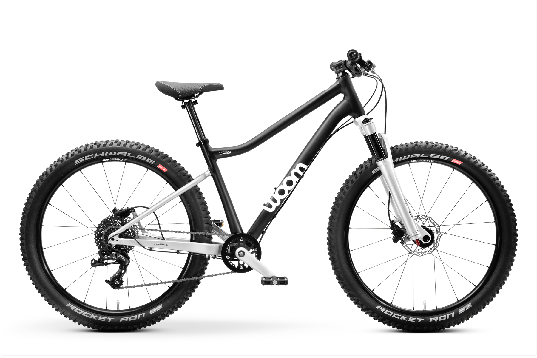 Helstu eiginliekar: Child-specific geometry, suspension fork, ergonomic saddle, disc brakes, tubeless-ready wheels, flip-flop stem, dropper post compatibility